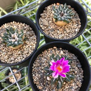 穏やかな日差しでサボテン部屋は春のようでした。早く本当の春が来るといいな。今日は勝手に芽が出ていた烏羽玉二個を植え替えました😊