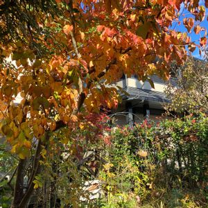 裏の先生のお庭の紅葉からの溢れ種で生えてきた紅葉🍁 デッキ横に移植してここ数年大きくなってきたもののあまり綺麗に紅葉せず。 毎年重なったり他の方向に向いたりする枝を剪定して、今年ようやくこれまでのように茶色っぽい色でない紅葉らしい赤色に🍁