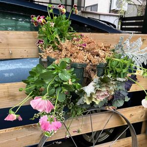 壁掛けスリット鉢がようやく届いたので先週新津花夢里で購入したパンビオや葉牡丹等を植える。 奥様作 鉢が届くまでに花が育って鉢の中ギシギシw大丈夫かな? みんな下向きになっていて全体のバランスも悪いけど、育てばなんとかなるか。まあ奥様ちょっとやる気になったのは嬉しい😊