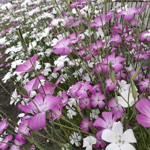 畑、花盛りです😄 にぎやかぁ😆 ③昨年ピンクのカスミソウって種をいただいたコは『バッカリア』というナデシコの 仲間でした😄 茎が太いの納得です😌