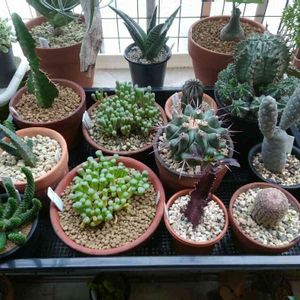 郡玉と菊晃玉 並べてみると違いが分かりますね👀 菊晃玉は窓が菊の様な模様です☺️ 夏型で、暑くなると花が咲きます。 随分と株が大きくなって来ました👀