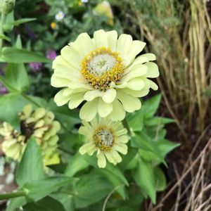 種蒔きから育てたジニアさんたち✨ 今からシリカゲル乾燥です🎵(^-^)v 真ん中の八重のライムグリーンの上のお花✨、白い花を乗せているみたいだけど、、、、ピンクの中に白が咲いていました😊 1週間したら➰ パリッパリです✨(^-^)/