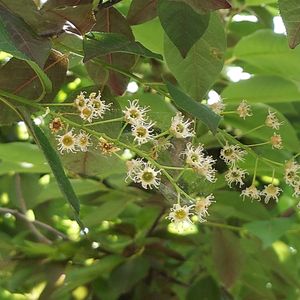 お散歩。 時々美味しいコーヒーが飲みたくて散歩の途中でお邪魔する喫茶店のお庭の木。 よく見るとお花?か花跡か? Google先生はウワミズザクラと教えてくれましたが 当たってますか?