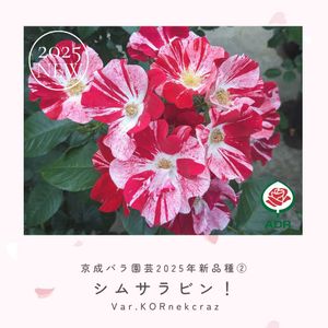 . 京成バラ園芸2025新品種② おとぎ話のおまじない - シムサラビン! - 「ひらけ~ゴマ!」という言葉を 聞いたことがあるでしょうか? アリババと40人の盗賊という物語に登場する 扉をひらくための呪文の言葉です。 シムサラビン!はドイツ語で「ひらけごま!」の意味。 この赤と白のしぼりの花が咲くと、 新しいバラを見つけた喜びが感じられます。 耐病性も抜群で、花と深緑色の葉のコントラストは 和・洋どちらのお庭にもぴったりです。 . . ・*:..。o○゚・*:..。o○゚・*:..。o○゚ 【シムサラビン!】 系統:四季咲き中輪系 花色:赤・白の絞り 花径:6~7cm 樹高:1.2m 一重咲き/横張り性 ・*:..。o○゚・*:..。o○゚・*:..。o○゚ . . 秋の大苗から全国の園芸店や ホームセンターで販売開始します! お楽しみに♪