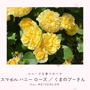 ユニークな香りのバラ - スマイル ハニー ローズ / くまのプーさん - 「くまのプーさん」の好きなハチミツ色の花が とっても可愛らしい 『スマイル ハニー ローズ / くまのプーさん』。 「フェティダ(青みを含む柑橘系の皮の香り)」という ユニークな香りを楽しむことができます😆 最初の青くささが飛べば、 オレンジの香りが強くなりますよ♪ じつは、この品種の香りの感じ方は人それぞれで、 ”パクチーっぽい”と感じた方もいれば、 大豆っぽい香りと油の感じから ”油揚げのような香り”と感じた方もいます。 香りは人それぞれに感じ方が違って面白いですよね😉 香りが気になる皆さん、 ぜひ実際の香りを体験してみてくださいね♪ 感想お待ちしています🙌 . ・*:..。o○゚・*:..。o○゚・*:..。o○゚ 【スマイル ハニー ローズ / くまのプーさん】 系統:四季咲き中輪系 花色:濃い黄色 花径:6~8cm 樹高:0.8~1m ロゼット咲き/直立性 ・*:..。o○゚・*:..。o○゚・*:..。o○゚ .