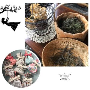 ラベンダーのスワッグを作った時に出た葉や茎の切れ端もとても良い香りがするので 捨てるのももったいないと思い ラベンダーのサシェを作りました