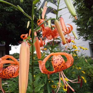 7/8…花散歩🚶🏼♀️🧡💚🥀🚶🏼♀️🎶で… 団地のお庭に… オニユリが…華やかに咲いてました… 手前の蕾でかいなぁ…〜…デカッ😲🤗🧡🏵️🏵️🏵️🥀🧡💚