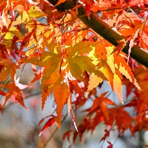 ご近所散歩しました。 イロハモミジの紅葉が眩しかったです😎 ②アガパンサスの上で対比が鮮やかなモミジ✨