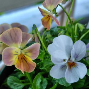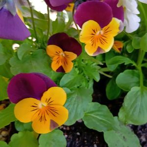 おはようございます。 🏷️月曜ビタミンカラー! 💛💜のビオラさんです。 夏に、葉挿しした多肉さんが、モリモリになりました。🥰 毎日、天気が、ころころ変わるので、大変です。😊 今週も、٩( ´͈ ᵕ `͈ ๑)ファイトッ ₊˚🐱🐾