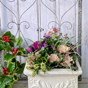 こんばんわ〜🌛✨ 先日に引き続き葉牡丹の寄せ植え4鉢目を投稿させて頂ますねぇ〜☺️ 先週の日曜日に浜北緑化木センター内プチフルール花屋さんにてお迎えの花苗… 最後の葉牡丹の寄せ植え4鉢目になりました(^^) ピンク🩷の八重咲きジュリアン イエロー💛の一重咲きジュリアンをミックスし ジュリアンの明るさと可愛ぃ〜らしさが葉牡丹の寄せ植えを華やかにしてくれました✨ また 紫のアリッサムがコロコロと咲き始めましたら素敵な寄せ植えになるかな… 楽しみです🎶🎶😎🥰
