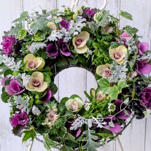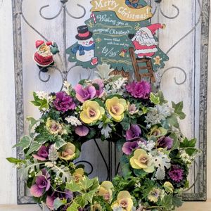 こんばんわ〜🌛✨ 連投を失礼致します🙇 リース作成から1週間経過をし型が整い落ち着いてきました(^^) 大好きな葉牡丹薔薇みたいで可愛ぃ〜ですよねぇ〜(^^) 葉牡丹の季節到来🤩 葉牡丹されど葉牡丹😉🤭