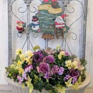こんばんわ〜🌛✨ 先週の木曜日に作成をしましたクリスマス仕様の寄せ植え🎄 お写真は作成直後のお写真になります😌 コニファーは昨年のクリスマス寄せ植え利用を夏越しをしたのを使用を…😉 フリフリ系のシクラメンと真っ赤なチェッカーベリーが可愛ぃ〜❤️🩷❤️🩷🤩