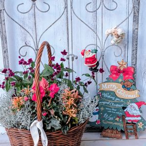 こんばんわ〜🌛✨ 忙しくバタバタしてましてミッドナイト投稿となってしました🙇🙏 先週の日曜日のおにわdeしょっぷのイベントにての戦利品… 少しずつ投稿のご紹介をさせて頂いてます😊 こちらは可愛ぃ〜らしいシクラメンを可愛ぃ〜バスケットに単品植えにして楽しみます🎶🎶😎 クリスマスリボンを添えて…🎄🤩