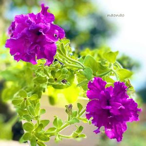 こんにちは😊 今日も秋晴れですね☀️ 我が家で唯一のフリフリ 八重咲きペチュニアさん💜 ✂️してないので、めちゃめちゃ徒長しちゃってて、もう終わりかと思ってたんですが、またお花が次々咲き始めました😅 ごめんね🙏ほったらかしにしてて💦 紫色がとっても綺麗💜 日差しを浴びて、透明感マシマシです😆