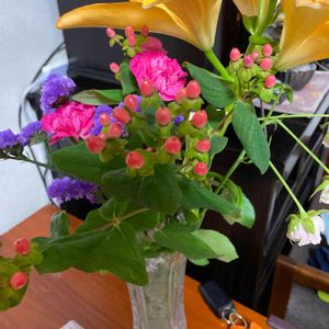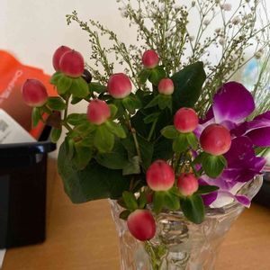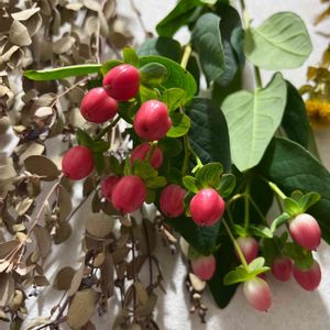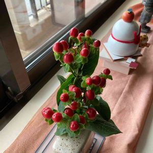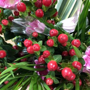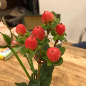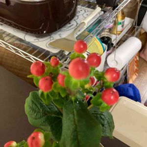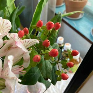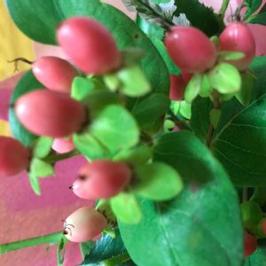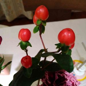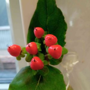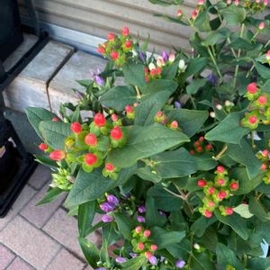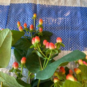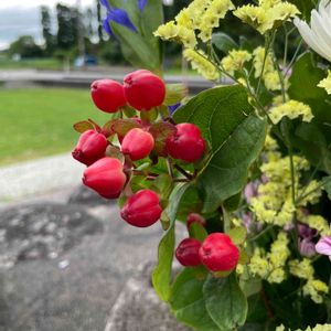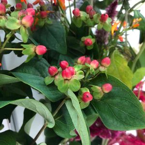 ヒペリカム・アンドロサエマム🌸🌿 別名コボウズオトギリ ↗赤い実と❤️↘ピンク色の実💗が付いて来ました。 どちらも挿し木からの子です。 ピンク色は、生花からの挿し木🌿 3年目の今年は大きくなりました💕