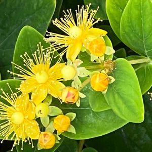 ヒペリカムの蕾、花、実 オトギリソウ科オトギリソウ属の低木 和名「オトギリソウ(弟切草)」 学名「Ꮋypercum」 別名「コボウズオトギリ(小坊主弟切)」 花言葉「きらめき」「悲しみは続かない」 🏷金曜日の蕾たち 🏷ちっちゃいものクラブ 参加します。応援📣しています。 人気の投稿に入りました 6月25日 ありがとうございます🙏🙇♂️🥰 小庭にて 22.06.23