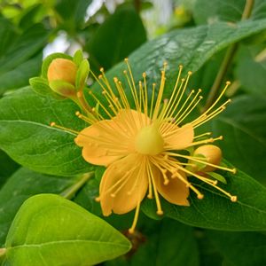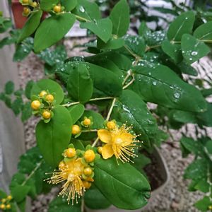 おはようございます☀️雨も上がり今日は良いお天気になりそうですね🎵ヒペリカム・アンドロサエマムです😆寄せ植えに入れていたの、すごく大きくなってきてしまい単独で大きな鉢に植え替えしました😅