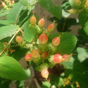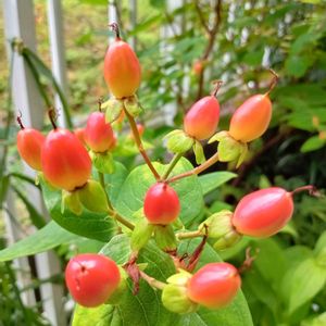 黄色の花が散って、実が赤くなりました。 花も楽しめますが、赤い実も可愛くて良いです。