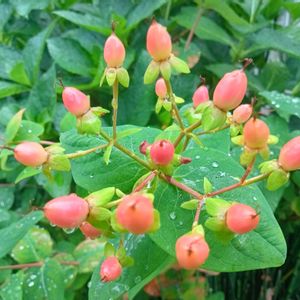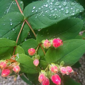 ヒペリカム・アンドロサエマム ⚘˖* お散歩道のアンドロサエマム 赤い実の子も多いけど、ピンクの実もとっても可愛いなぁ🩷