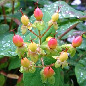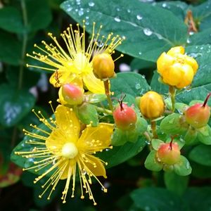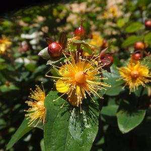 ヒペリカム 別名 コボウズオトギリと 真理様に教えて頂きました。😊 輝く花と紅い果実。 「元気出してね~」と 声援していますよ😃
