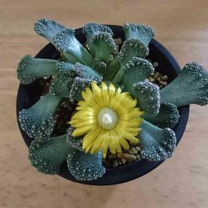 チタノプシスが開花。 葉がキモ可愛いやつ🌱