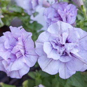 おはようございます✨🌄✨ 今日のお花ペチュニア🌿💜🌿 この子はベランダの八重咲き 「ぶどうラテ🍇」 ブドウ+ミルク色🌿🤍💜🤍🌿 爽やかで可愛い🌿🤍💜🤍🌿 🏷(祝)青い花マニア20000pic