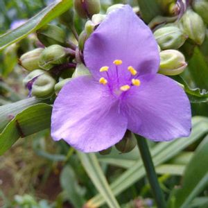 優しい笑顔(’-’*)♪ 💟オオムラサキツユクサ💟 和名:紫露草💜 三枚の花びらに黄色の雄しべと雌しべ 一日花ですが、沢山の蕾が次々咲き この梅雨時にも毎日爽やかな花姿🎶 花言葉🌼 『尊敬しているが恋愛ではない』 どんな気持ちなんだろうね⁉️ 🏷️金曜日の蕾たち 🏷️(祝)青い花マニア20000pic