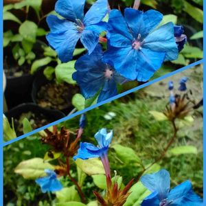 🌸ルリマツリモドキ ブルーサファイア🌸 ルリマツリよりも青の色が濃いですが、よく似た形状してますね(*^^*) 多分これは ブルーサファイア(プルンバギノイデス) では無いでしょうか? ✱夏7月ごろから秋9月ごろまで花を咲かせる。木質化はせず、多年草の扱い。 高さ20~30㎝で横に広がって伸びる。 秋には寒さに当たると葉は赤く染まります。 本格的に寒くなると地上部を枯らして宿根します。 以上、ネットより抜粋しましたが ルリマツリは同じイソマツ科でもプルンバーゴ属 こちらはルリマツリモドキ属で属が違うそうです😉 本家?ルリマツリも我が家にありますが、大きく拡がって伸びてくるのに対して この花は青いグラウンドカバーとしても使われるほどの低さが魅力かなー?