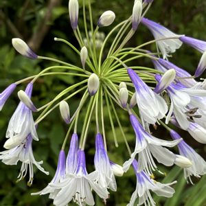 アガパンサスが最盛期を迎えています。 アガパンサスの種類色々 1️⃣アガパンサス ツイスター? 葉が細くしなやか。 2️⃣アガパンサス ファイヤーワークス? 蕾の数が半端ではない‼️ 葉がツイスターよりやや太く常緑タイプ ツイスターとの違いがはっきりしない? 3️⃣アガパンサス ポッピンパープル 赤紫色 4️⃣? 水色にブルーの筋。🩵 5️⃣? 紫色に濃い紫の筋。💙