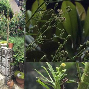 子供👶が小学生の時に作った作品を植木鉢にしようとビオラ、キランソウ、コバノタツナミソウなど試みたが上手くいかず、たまたまヒメジョウオンらしき芽🌱が出て様子を見ていた。 GSに加入した時にセイタカアワダチソウと言う方がいて育ててみることにした。 夏場に水遣りに失敗して葉も枯らしたが、やっと花が咲くばかりになり待っていたが、雨が降っている間に花が咲いたようだ。 セイタカというだけあって、男性の身長程ある。 9月12日撮影