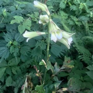 これも家族からのpic 白山にて⑥ Google lensでオオウバユリと出ます♬ 葉の様子がわからないので自信はありません😭 調べてみるとウバユリの変種で、サハリンから中部地方までとあります♬