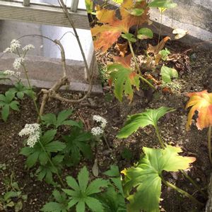 秋です。 ⑥ タンチョウソウも紅葉🍁していました。 これから長い冬を地下で過ごします。 右側 今日11月3日 左側 2018年3月27日