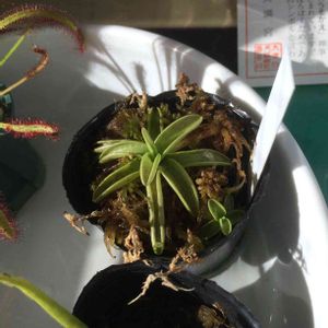 母親に贈って現在代行管理中のP.エセリアナ(やまはる園芸さんより購入)です。小さなエケベリアみたいにも見えなくもないです。屋内の適地が私の机しかなかったのでセファロタスと一緒に管理してます。管理してたら自分も欲しくなりました。今度機会があれば購入したいですね。 ポロリと落ちた葉を脇に置いていたらやっぱり発芽しました。エセリアナの葉は発芽率が非常に高いです。 花が綺麗、葉もロゼット型で美しい、用土が乾いたら水をやる普通の水やり管理ができる等、メキピンは贈るのに適している食虫植物かなと思います。食虫植物普及の鍵を握っている…かもしれません。