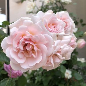 💚フェリシア💚 ドンドン咲いてきました😊 開ききったのは切った方がいいのかな? 奥に見えるのはヨハン・シュトラウス こちらも今日は切ってしまいます。