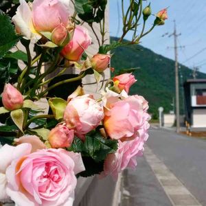満開😍✨🌸🌿✨🎶 これだけ咲くとは✨✨ 予想より咲いてくれてとっても嬉しい💕とっても良い香りです🌿 フェリシア、ベランダ時代はわりとサーモンピンク〜アプリコットで咲いてて‥‥ ネットでググると もっとピンクなのになぁ〜なんて思ってました😓 畑に来たらちゃんとピンクだぁ〜💗 やっぱり陽当りが原因だったのね💧このpicは夕方の曇りだからイマイチ澄んで見えないけど😅💦 nyaco's second garden rose No.5-23 フェリシア②