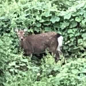 番外編 昨日夕方広瀬川の土手をウォーキング中に3頭の鹿🦌に遭遇しました。😊🎶 親鹿1頭、小鹿2頭でした、小鹿の距離は遠くて、スマホでの撮影は難しかったです。😥