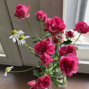 バラ 房で咲くのだけど、いっぺんには咲いてくれない。 萎れちゃう花と硬い蕾が混在しているから花ガラつみが少し面倒・・でも、モリモリ〜