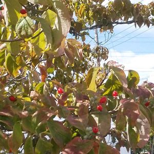 ハナミズキの実が赤くなりました🦜🕊️🐦 🎶赤いとりことり なぜなぜ赤い… ユーチューブで聴いてみると覚えていた曲とちがってた~🤪 私のは「シャボン玉」の曲よりだった🙃