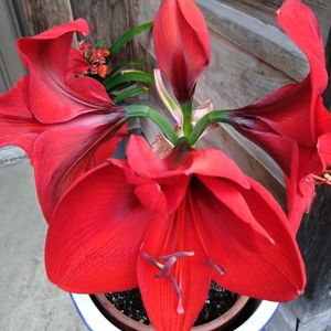 こんばんは😊 今日は 気温が高く 初半袖で 仕事してきましたよ 🫠 ☀️ 今日は2枚 投稿しますね 我が家のチューリップ会場から~ 生けてみました😅 適当なんです🤭 2枚目は 昨年お迎えした 花香るチューリップ バルバドス 開花です ꉂ🤭︎💕うふふ 萌える🔥赤🤭 ( *¯ ꒳¯*)クンクンスンスンしてみました 穂乃果に 匂いがするかな😅 でも 何の匂いって聞かれても お答えできませーん😂 o(〃^▽^〃)oあははっ♪