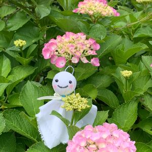今日は梅雨の合間の晴れの日です🐰うさ子ちゃんが遠足なのでてるてる坊主ちゃん作りました💕晴れにしてくれてありがとう💕☀️うさこちゃんは元気に出発しました💕紫陽花の中でてるてる坊主ちゃんも嬉しそうに笑っています💕💕🐰🫶