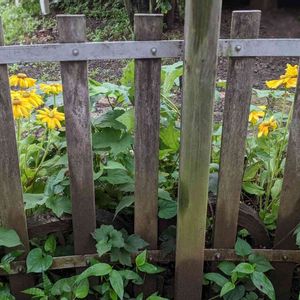 小さいドッグラン周りに先日植えた黄色のルドベキア。八重の秋明菊の旺盛な葉の中でもちゃんと主張してくれています。優しげなお花だけで無く、こんなお花も元気をくれていいものです。趣向を変えて今日はドッグランの内側から写してみました。