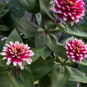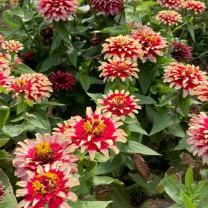 ジニア百日草 スィズルチェリー&アイボリー❤️🤍❤️今年はこの百日草は順調に生育しています👌これは120のロングポットですが一株でこのボリュームです🙌🙌