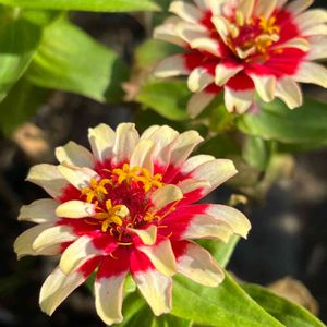百日草 F1スィズル チェリー&アイボリーです。 7月までは元気だったんですが、8月に入ってから暑さが効いたのか、枯れかけていました。 9月に入ってから、どうやら元気を取り戻したみたいです😍