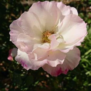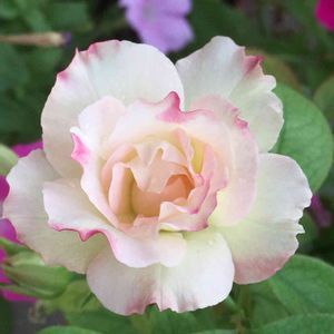 マチルダ もう一枚🌹 あまりにもかわいいので💕💕💕 マチルダは 白い花びらの先を 淡いピンク色が縁どるバラです🌹 花びらの端がゆるく波打つので、 とても愛らしい印象がします🍀 花色はかすかに青みを感じるためか、 蛍光色を感じる花です🌹 微香ですが私の好みの香りです🌹