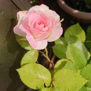 いつ降ったのかしら?庭が雨で濡れてます。今日の水やりは、得した気分。 優しい色のマチルダが小さく一輪咲いてて、またまた得した気分。