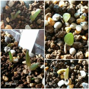 パキポ、🌱が出揃いました。 其々2本は確保出来たので、 満足しています! 芽は出たものの、途中でダメになる物も。 アガベより難易度高いなぁ💦