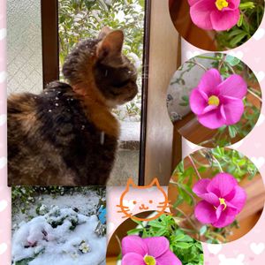 おつかれさまでしたー💛 今日は一日吹雪いてました❄️💨❄️💨 仕事中は、りーちゃん😺 この窓🪟から 外へ出入りしますよ💕 帰ってくると影が映ってわかるんです😄 今日も出ると言うから窓を開けたら雪❄️がブワーって❄️💨 りーちゃん😆❄️❄️❄️❄️❄️ ダメだコリャって💦おこたに逆戻り🧡 先日のジュリアンさん達の鉢も雪だらけ❄️ 無事に夏越ししたオキザリスさんを お部屋に入れたら沢山花🌸が開いてきました🌸 よかったよかった🧡(◍︎⁃͈ᴗ•͈)४४४♡︎*ヌクヌク🧡 みなさん風邪ひかぬよう🤧 暖かくして休んでくださいねー❀︎.(*´▽︎`*)❀︎. 素敵な週末を〜☆〜(ゝ。∂)