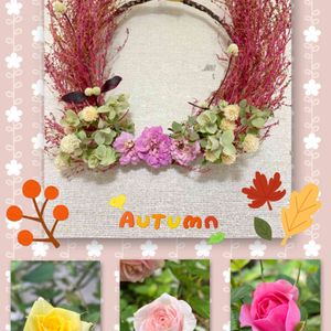 コキア🌿のリース作ったよ(๑́•∀︎•๑̀)ฅテヘ- ミニ薔薇🌹三色咲きだしました🤗