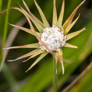 キッコウハグマ 羽毛状に短い毛のある冠毛がキラキラと光っている✨ 遺伝子の多様性を保つためには、開放花が受粉して実を結ぶことが大事だけれど、小さな花にムシを呼ぶことが難しいとなれば、自家受粉してしまえ! ということで、この花には槍のように尖って開かぬままの閉鎖花が多い💛 痩果は細長く毛が生えており、そこから冠毛が広がって、風に運ばれるのを待っている 金曜キラキラ🏷