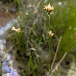 イヌノヒゲ と イヌノハナヒゲ 湿原の草むらにポツンポツンと見える白い花はイヌノヒゲ(犬の髭)♡ ホシクサ科ホシクサ属 漢字で書くと「星草」の仲間で、これは夜空に光る星に見立てたのが名前の由来☆ で、髭のようにシャープな総苞片、周辺に雌花があって、中央部にゴマのように黒く見えるのは雄花の葯◾ワンちゃんの黒い鼻に見える?(∪・ω・)ワンッ 一方で、とてもとても名前が似ているイヌノハナヒゲ(犬の鼻髭)は、カヤツリグサの仲間で、姿形は全然違う🟤 小穂から出ている茶色の糸状のものが雄しべの葯で、細い糸状のものが雌しべの柱頭➰ これが鼻髭やね(ᐡ-ܫ•ᐡ)